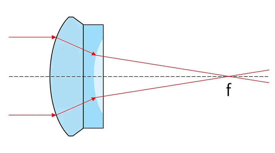 Линзы с мениском — это вогнутые и выпуклые линзы, имеющие одну выпуклую и одну вогнутую поверхность. Если кривизна выпуклой поверхности больше, чем кривизна вогнутой, линза имеет положительную фокусную длину и используется в качестве увеличительной линзы. Если кривизна вогнутой поверхности больше, а выпуклой — меньше, линза называется отрицательной менисковой и может заменять другие отрицательные линзы.