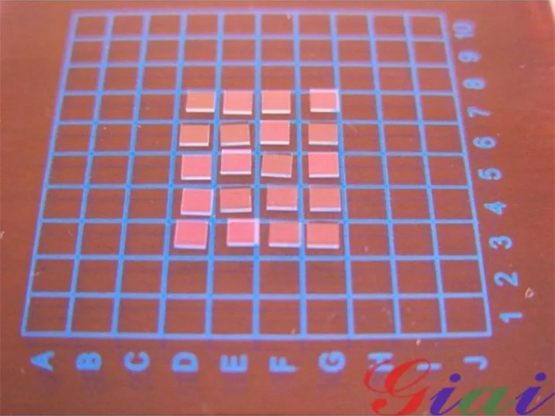 Размеры изделия: 2×2×0,3 мм, 50×50×0,7 мм
